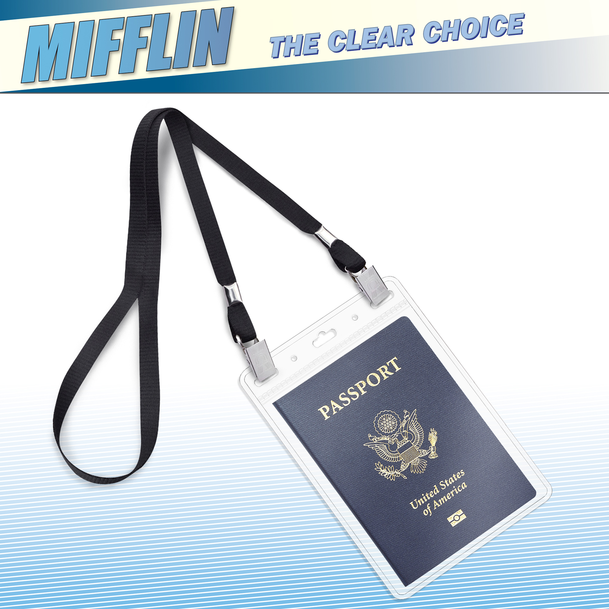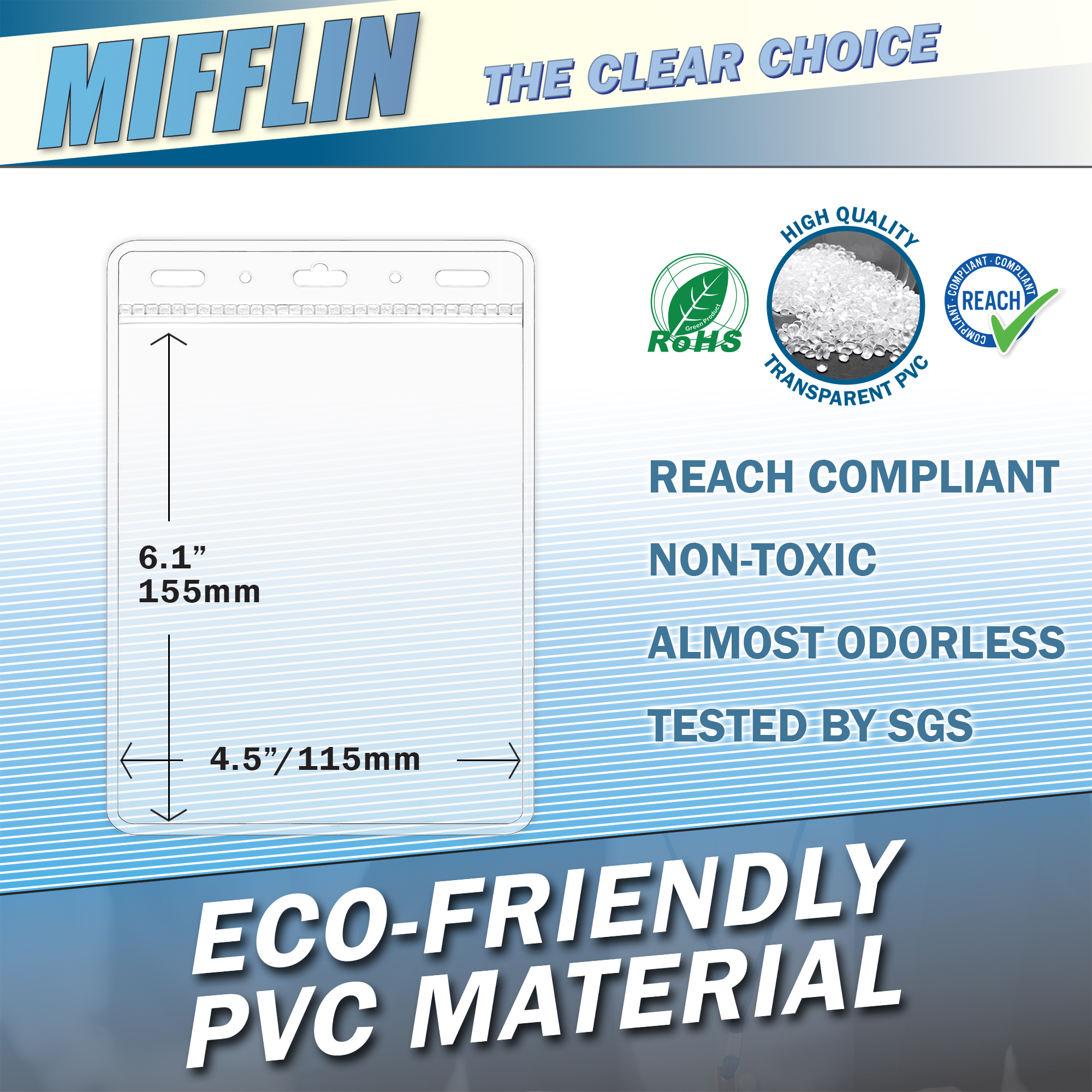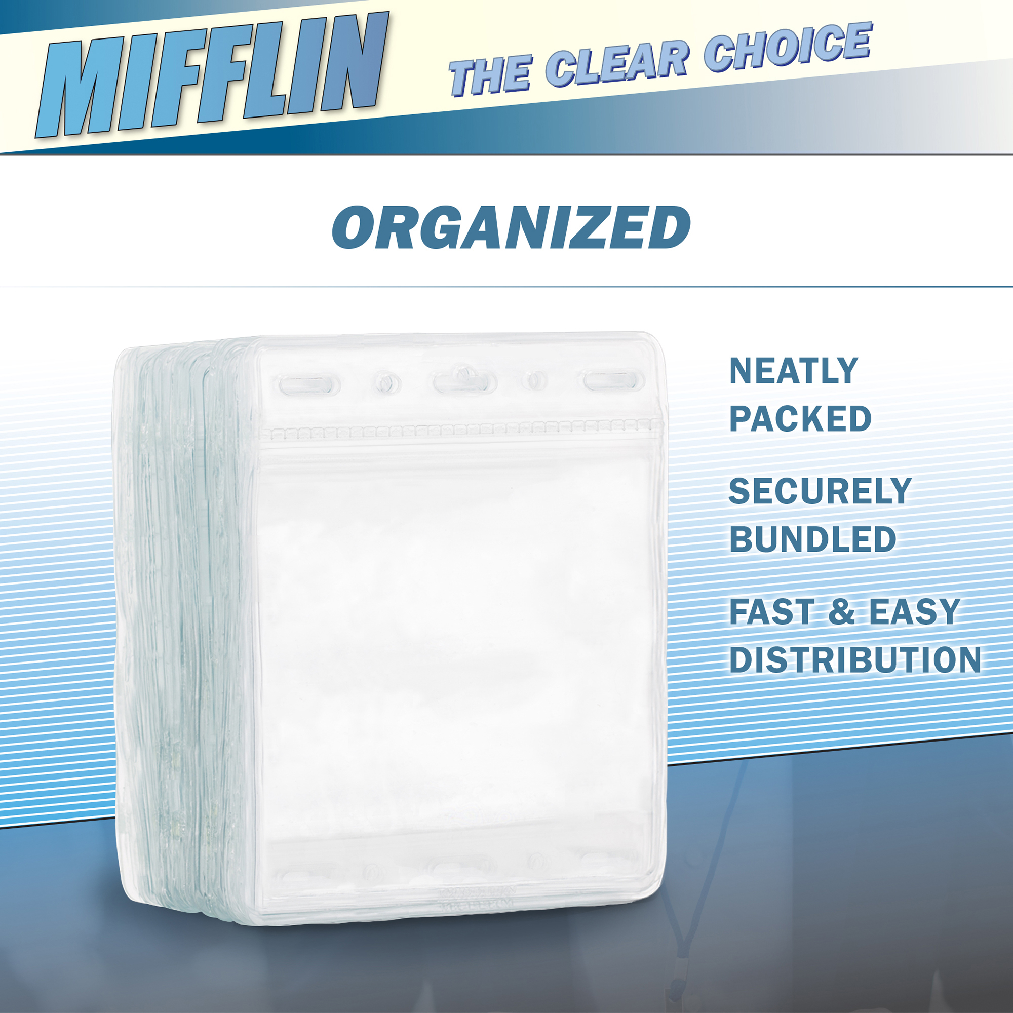 Mifflin Rigid ID Name Badge Holders (Clear, Vertical 3.35×2.1 inch, 30 Pack), Heavy-Duty Hard PC Plastic Identification Card Protectors, Transparent Tag w/ 2 Slots