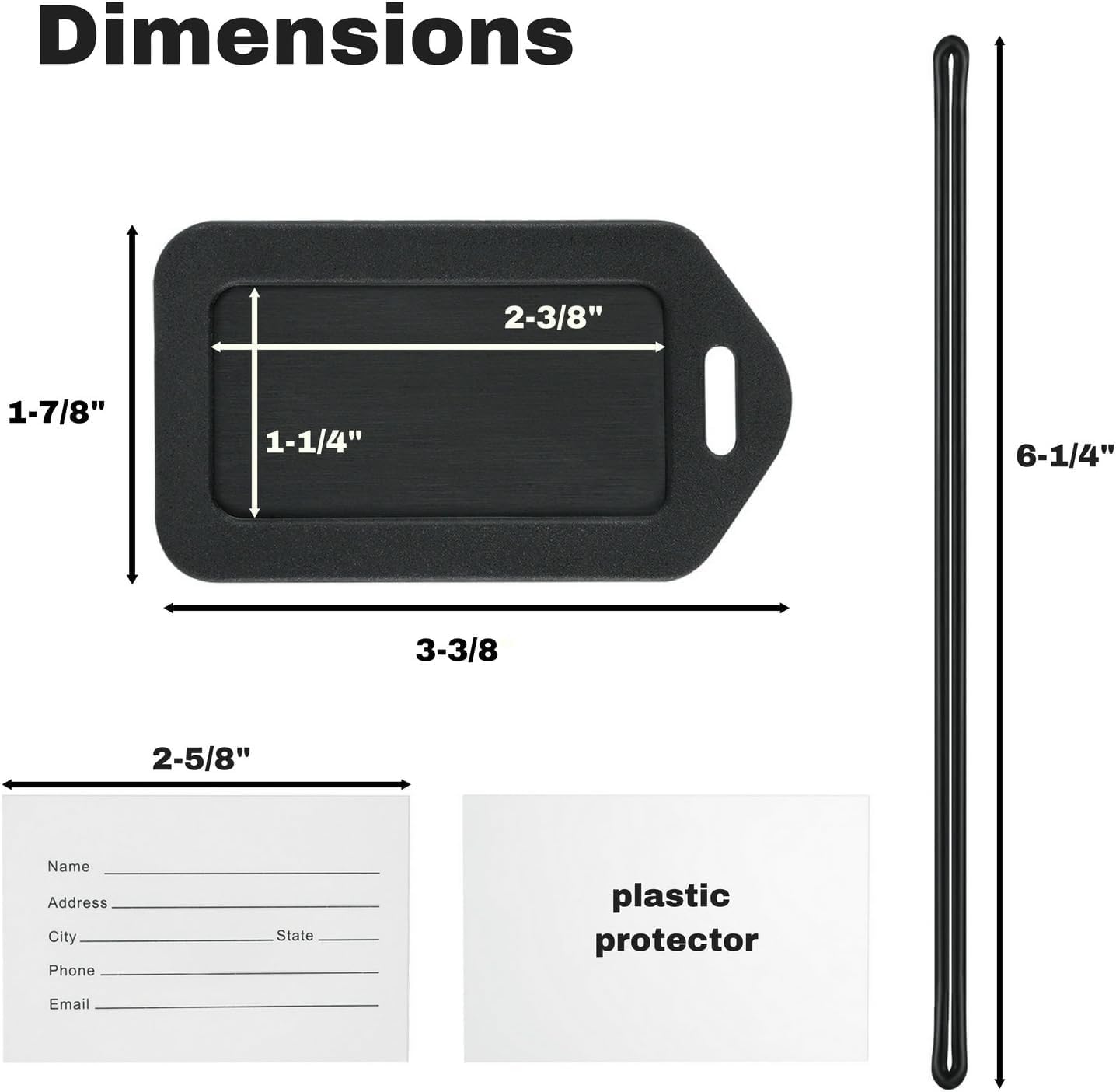 • SIZE – 3 3/8″ x 1 7/8″ inches; Visible part of insert tag: 2 3/8″ x 1 1/4″ NOTE: Does not fit 3.5 x 2.125″ standard size business cards