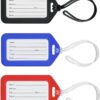 • INCLUDED – 6 luggage tags (2 Black, 2 Blue, 2 Red), 6 name tag inserts, clear protective film to protect against dirt and moisture, and 6 dense vinyl strap connector ties