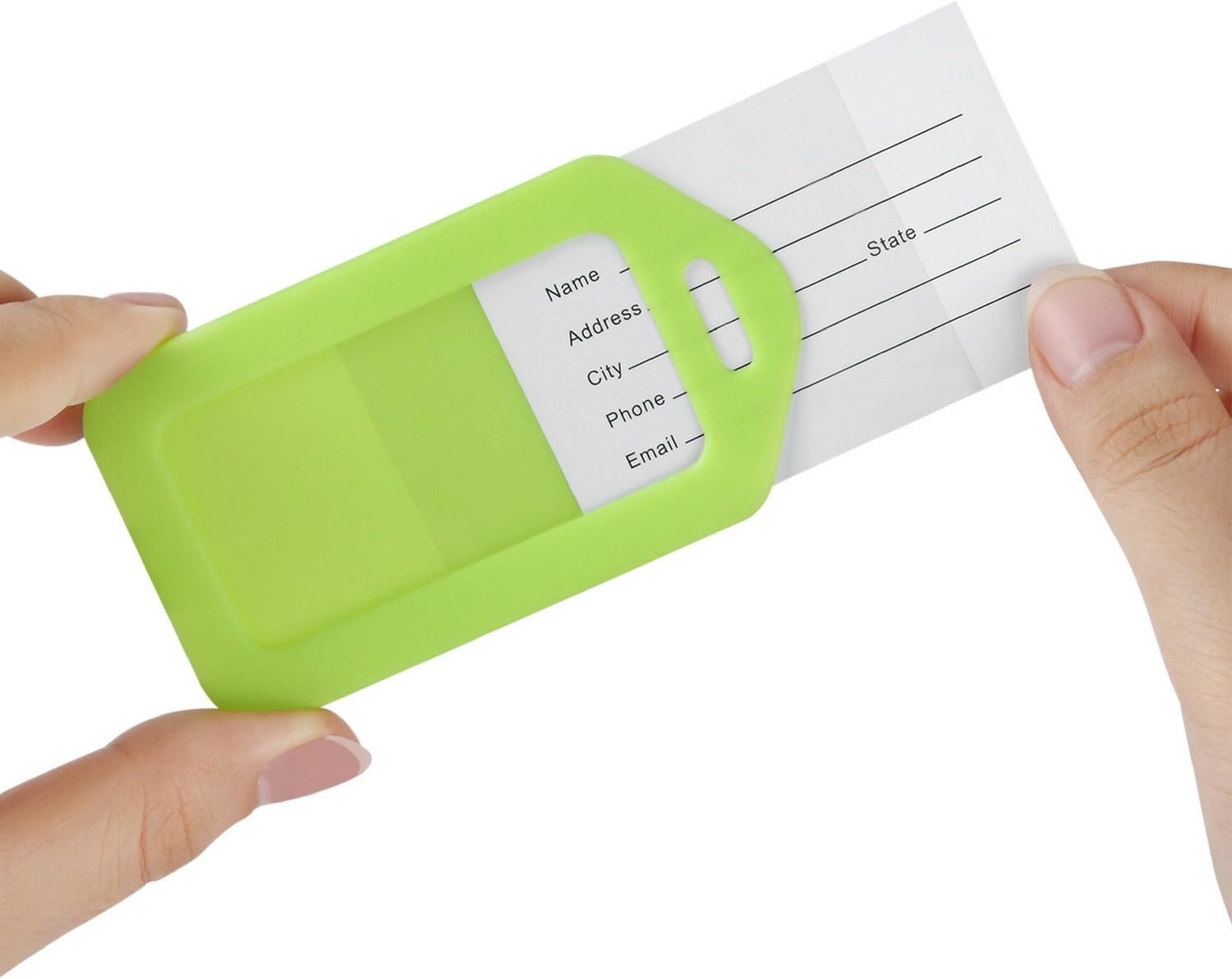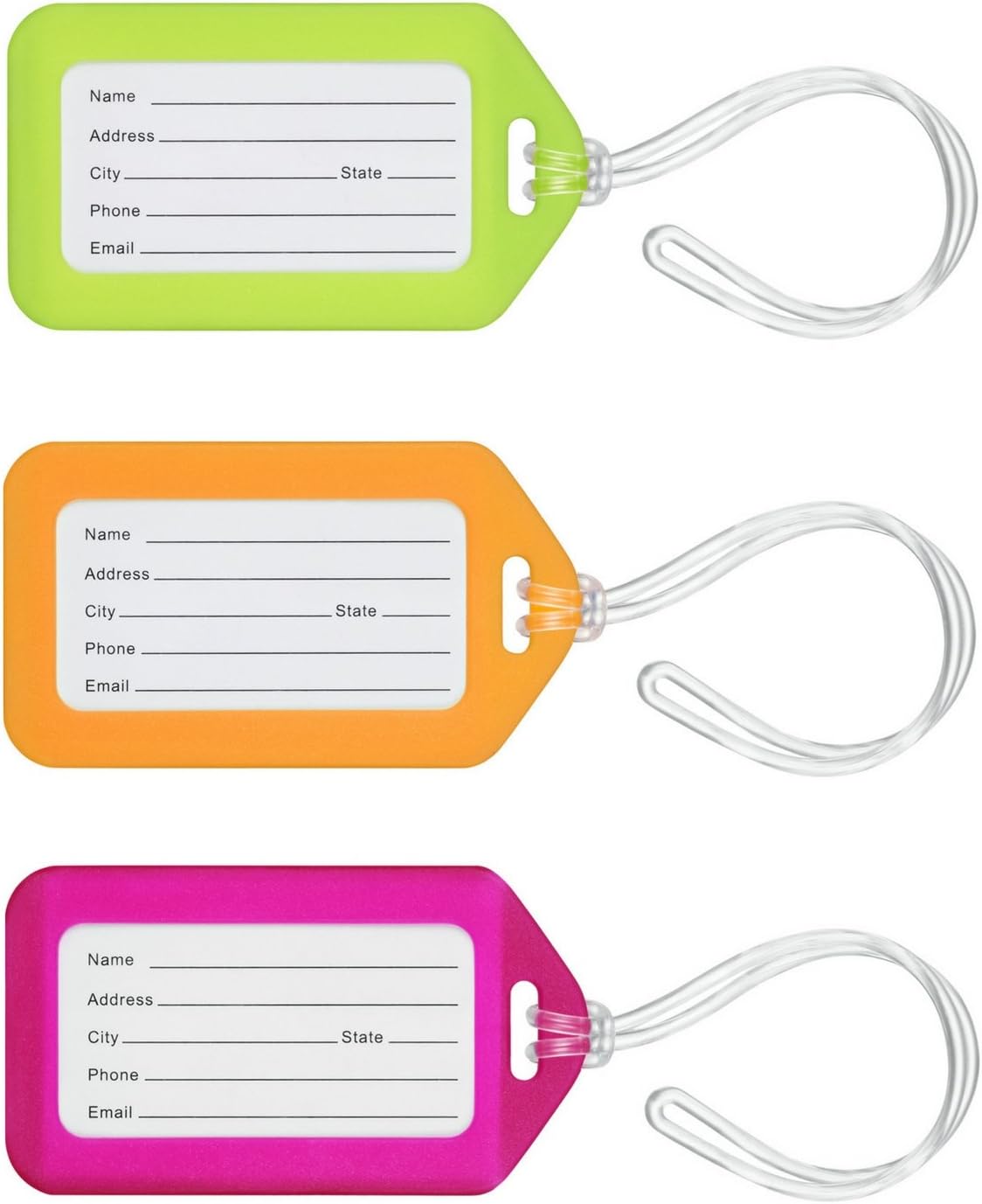 • INCLUDED – 6 luggage tags (2 Neon Yellow, 2 Orange, 2 Pink), 6 name tag inserts, clear protective film to protect against dirt and moisture, and 6 dense vinyl strap connector ties